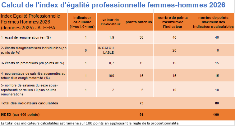Le total des indicateurs calculables est ramené sur 100 points en appliquant la règle de la proportionnalité.
